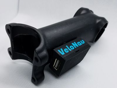 A bicycle stem with built-in 6000mAh rechargeable battery capacity (~2x phone battery) with USB port to power Garmin computers, smartphones, front lights, camera or any USB device